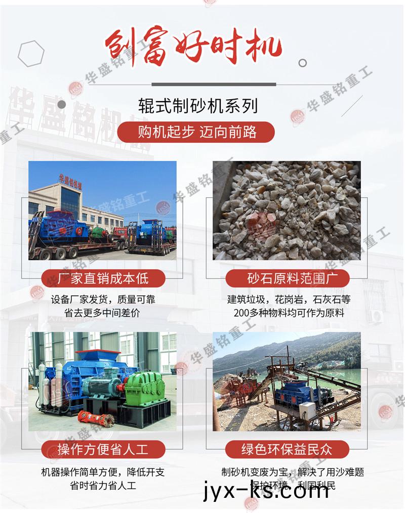 辊压制砂机的价格是每一位用户都很关心的事情,但是由于辊压制砂机的生产厂家有很多,不同的厂家对于机械设备的定价都是不一样的,并且型号的不同是直接影响机械的价格,一般来说辊压制砂机的价格在几万到几十万左右,华盛铭重工作为直接销售型生产厂家,对于辊压制砂机的价格皆为出厂价,低于同行价,且注重设备质量,质量过硬,深受消费者青睐,欢迎用户朋友随时在线了解辊压制砂机的具体价格。