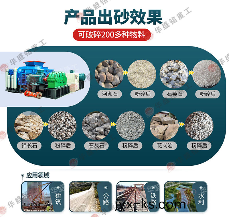 选择大型液压对辊制砂机作为花岗岩破碎设备具有许多优势。它能够满足大规模生产需求,提供高质量的破碎效果,具有优良的设备质量和耐用性,同时还注重全安性和操作便捷性。此外,它还提供可靠的售后服务和技术支持。可破碎的物料范围广: