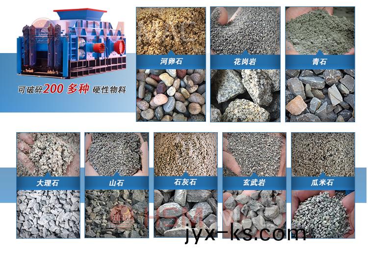 【适用物料】:河卵石、方解石、石英石、大理石、鹅卵石、膨润土、铁矿石、青石、山石、水渣、石灰石、风化砂、辉绿岩、花岗岩、玄武岩等
